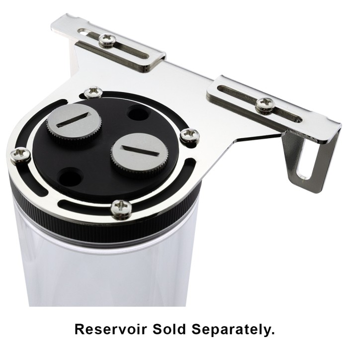 Steel mounting bracket for Koolance COV-TKTOP2 and COV-TKTOP2X70 dual port reservoir lids. Can be adjusted for mounting widths from 72-125mm.
